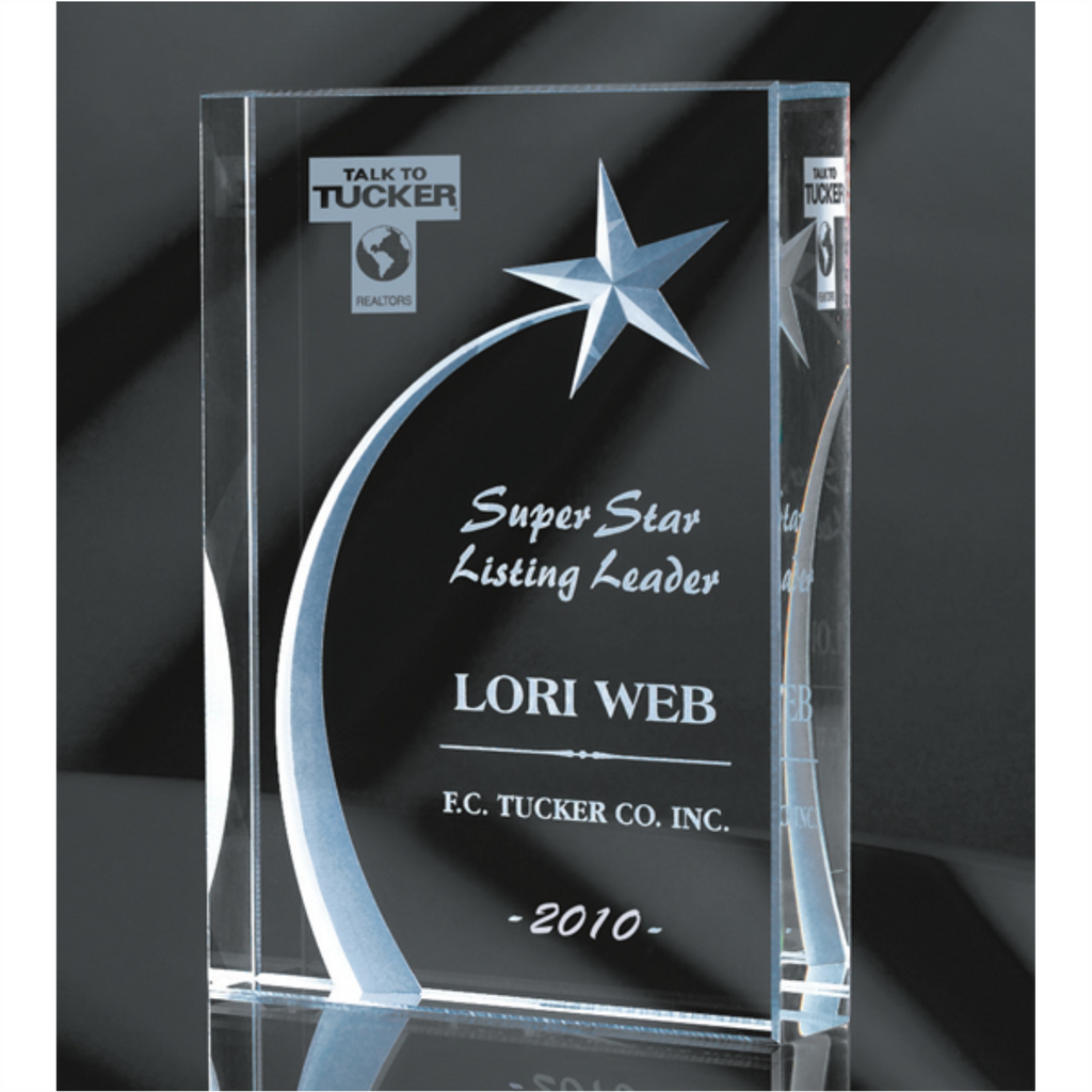 Beautiful Laser engraved acrylic award. 7 inch tall. Great award for your star employees.